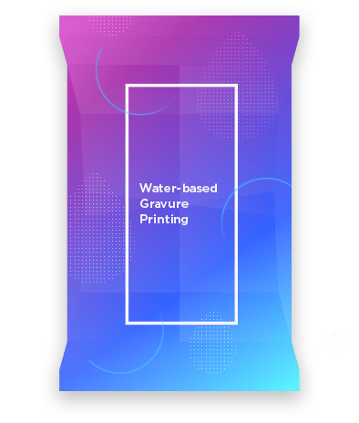 従来の「油性(有機溶剤型)グラビア印刷」の問題点を解決すべく、業界で最も早くグラビアインキの『水性化』に取り組み実用化させました。「水性グラビア印刷」は、地球環境問題、労働環境問題を改善し、包装する食品の安全を図ることができます。